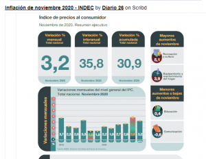 Costo de vida en Argentina: la inflación de noviembre fue de 3,2%, según el INDEC